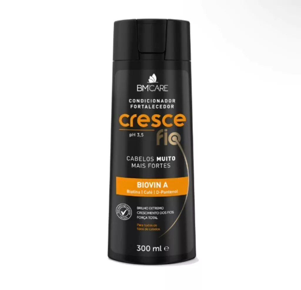 O Condicionador Barrominas Cresce Fio, pH 3,5, de uso diário, proporciona resultado instantâneo e maciez imediata, com muito brilho e força aos fios. Sua fórmula possui Biovin A (ativo exclusivo Barrominas), Biotina, Café e D-Pantenol. Não contém petrolatos, corantes e sultados. Pode ser usado na técnica Low Poo.