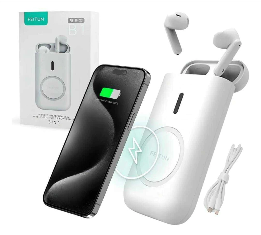 Fone De Ouvido S/ fio + Carregador Power Bank 3in1 B1 FEITUN