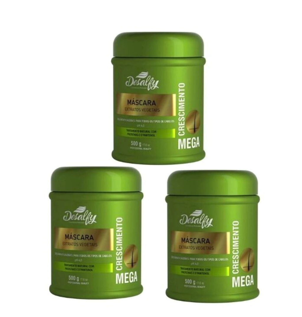 A Hidratação Mega Crescimento Desalfy possui formulação exclusiva com extrato de Jaborandi, Raspa de Juá e Mutamba, além de proteínas e D’Pantenol, que agem na raiz e nos fios trazendo força, regeneração e hidratação. MODO DE USAR Após lavar os cabelos com o Shampoo Mega Crescimento, retire o excesso de água dos fios e aplique a Hidratação Mega Crescimento, massageando do comprimento às pontas, de cima para baixo. Deixe agir por 10 minutos e enxague em seguida.