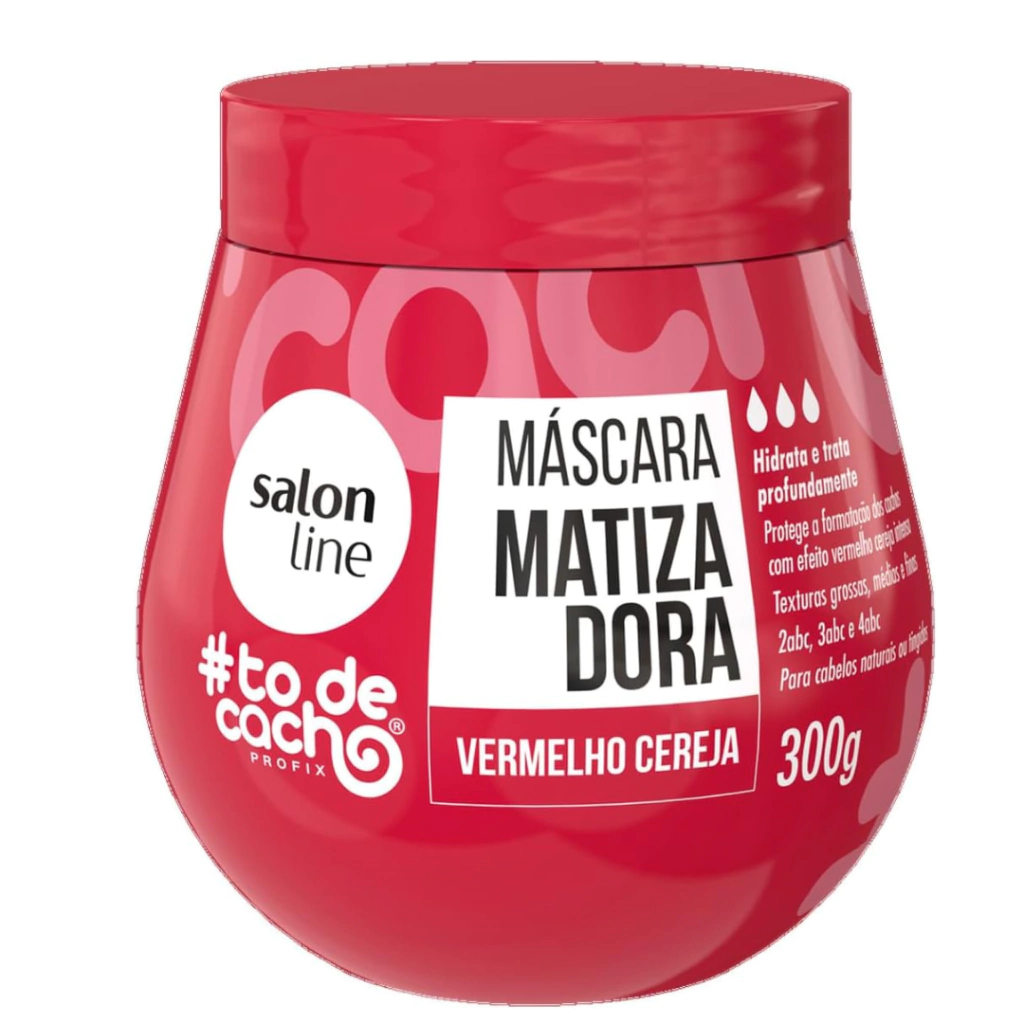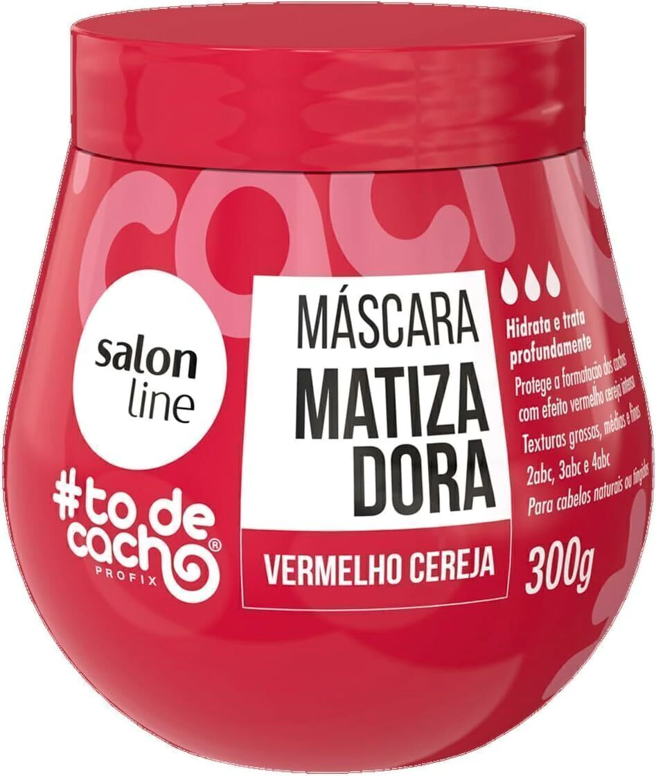 Salon Line #Todecacho Matizador Vermelho Cereja Máscara O que é e para que serve? A Máscara Matizadora #todecacho Vermelho Cereja é um produto desenvolvido especialmente para hidratar e colorir os cabelos cacheados, crespos e ondulados. Serve para quem deseja manter a vivacidade da cor vermelha cereja enquanto proporciona uma hidratação profunda e condicionamento dos fios. Ideal para realçar a beleza natural dos cachos, essa máscara é indicada para pessoas com mais de 12 anos. Quais os Benefícios do #Todecacho Matizador Vermelho Cereja Máscara? - Garante uma coloração vibrante e uniforme; - Revitaliza os cabelos e conferindo um aspecto saudável e radiante. Ativos: - O extrato de cereja presente na fórmula age como um poderoso antioxidante, protegendo os fios contra danos externos e promovendo uma hidratação intensa; - A vitamina B5, por sua vez, reforça a estrutura capilar, proporcionando maciez e brilho duradouros. Modo de uso: 1. Com os cabelos limpos e úmidos, aplique a máscara mecha a mecha, massageando da raiz às pontas. 2. Deixe agir por 5 a 10 minutos, conforme a intensidade desejada da cor. 3. Enxágue bem para remover todo o produto. 4. Finalize como desejar, seja com um difusor ou deixando secar naturalmente. *Realize sempre uma prova de toque antes de usar o produto para verificar possíveis reações alérgicas. Para realizar o teste de mecha, aplique o produto em uma pequena mecha na nuca e deixe agir por 20 minutos. Se a cor e a condição do cabelo forem satisfatórias, aplique a máscara conforme o modo de uso indicado. Utilize luvas durante a aplicação para evitar a pigmentação nas mãos e unhas. Posso usar a Máscara Matizadora #todecacho Vermelho Cereja em cabelos tingidos? Sim, a Máscara Matizadora #todecacho é ideal para revitalizar a cor de cabelos tingidos, mantendo a intensidade do vermelho cereja e proporcionando um brilho radiante. A Máscara Matizadora #todecacho Vermelho Cereja resseca o cabelo? Não, a fórmula da máscara é enriquecida com extrato de cereja e vitamina B5, que hidratam profundamente e condicionam os fios, deixando-os macios e sedosos.