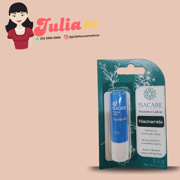 Experimente o requinte e a eficácia do Protetor Labial Isacare Niacinamida 3,5g e realce a beleza dos seus lábios com elegância e cuidado.
