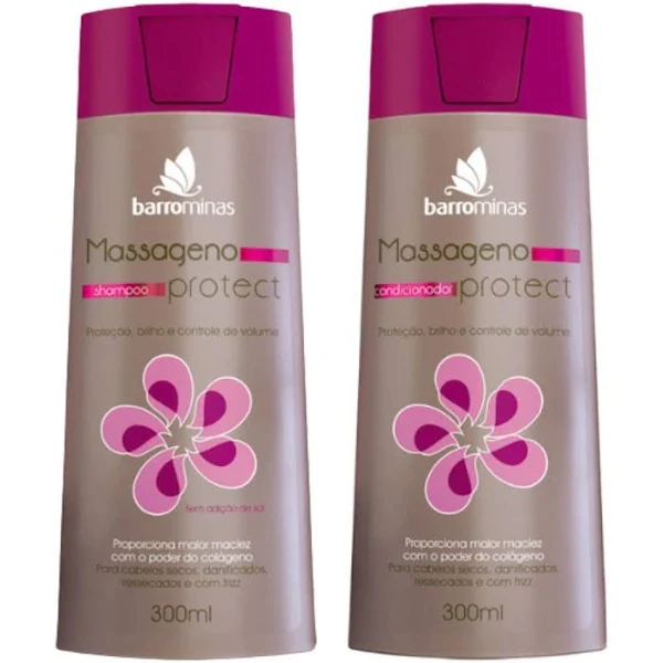BARROMINAS Massageno Protect Shampoo 300ml, proteção total, sem adição de sal, pH 5,5 indicado para cabelos secos, ressecados, opacos e com frizz. Limpeza suave e hidratante. Possui fórmula perolizada com Colágeno, Silicone.